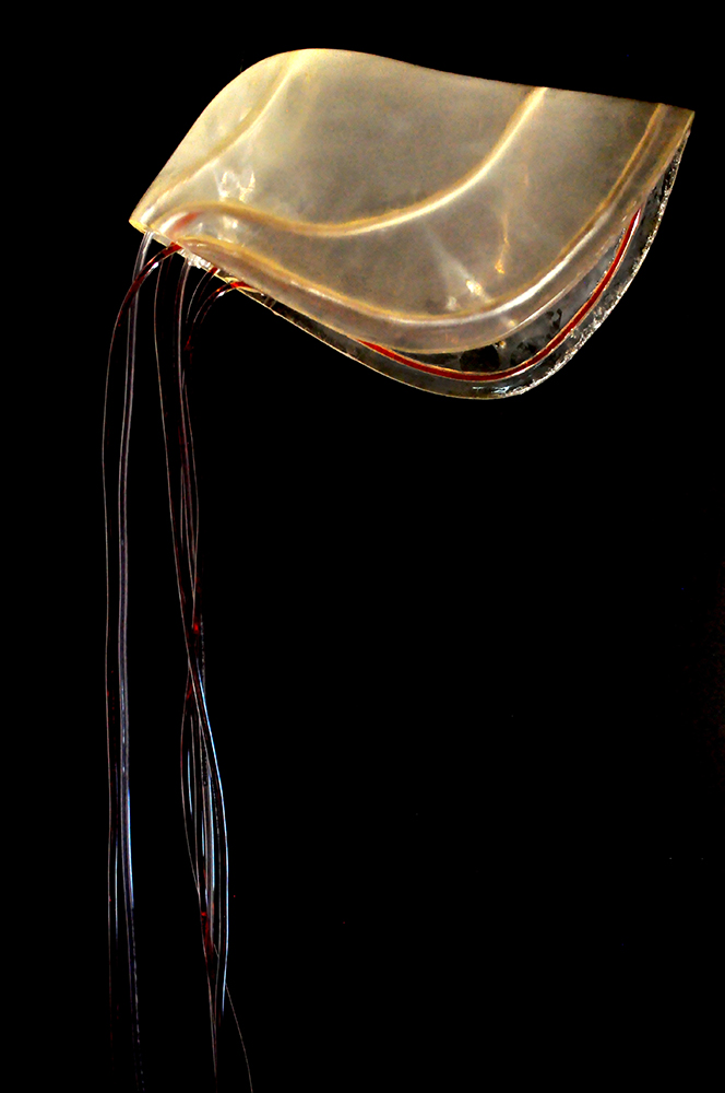 Resin, pvc tubes, pumps, electronics, Arduino, artificial blood, sound.
